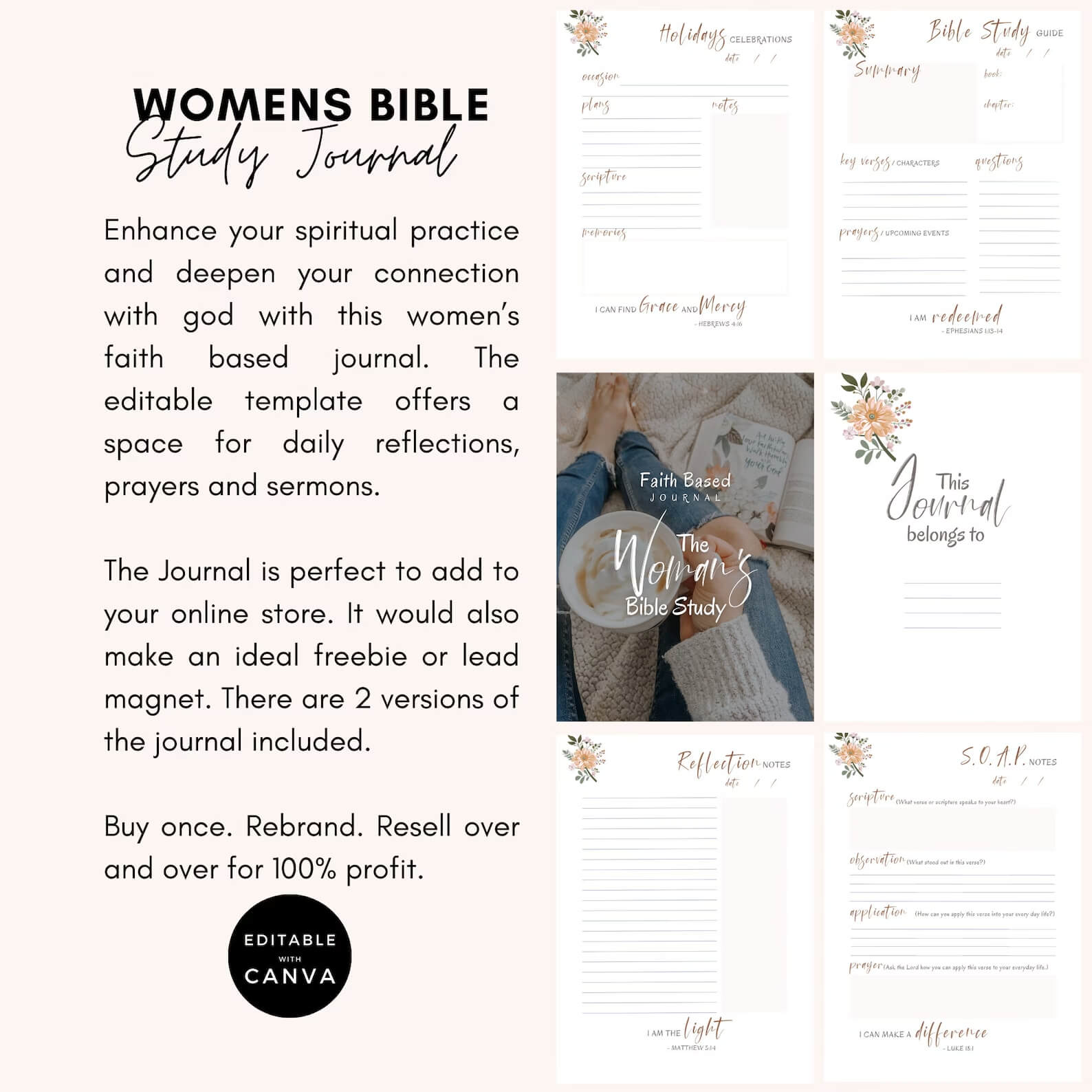 Editable Women's Faith-Based Journal | Devotional Journal & Bible Study Guide | WITH RESELL RIGHTS (2024)